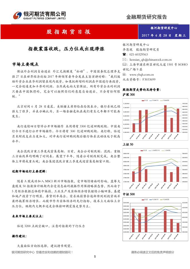 指数震荡收跌,压力位或出现滞涨 - 股指日报.pdf