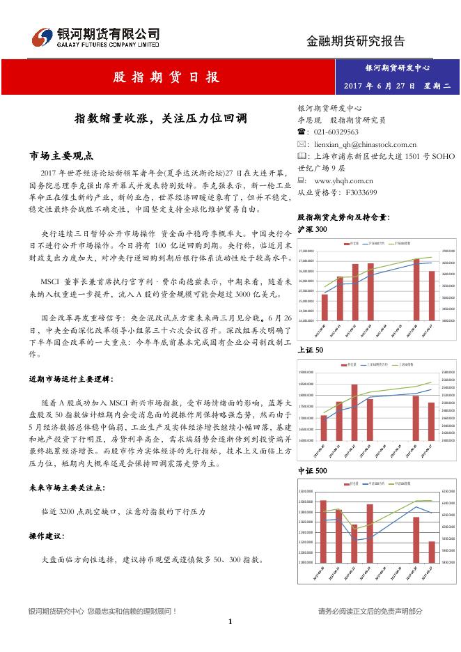 指数缩量收涨,关注压力位回调 - 股指日报.pdf