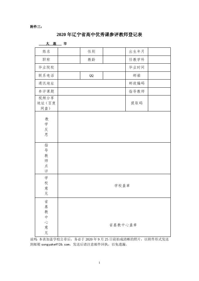 2020年辽宁省高中优秀课参评教师登记表.doc