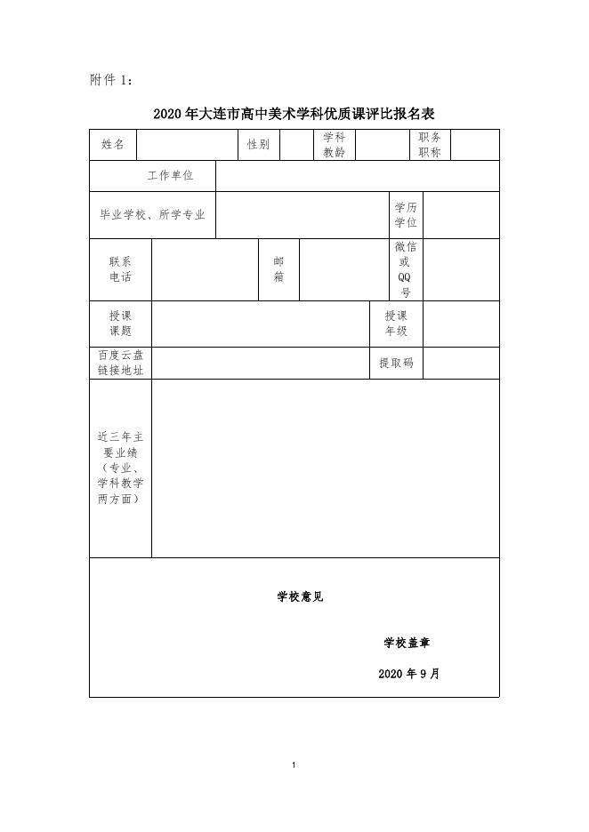 2020年大连市高中美术评优课报名表.docx