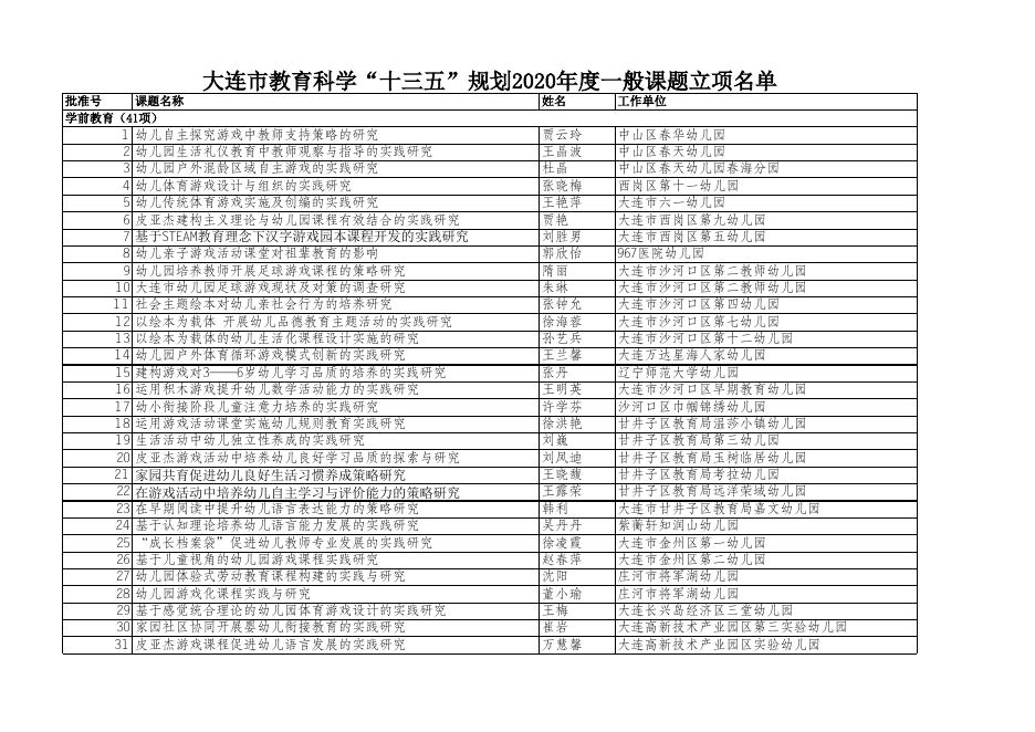 大连市教育科学“十三五”规划2020年度一般课题立项名单.xlsx